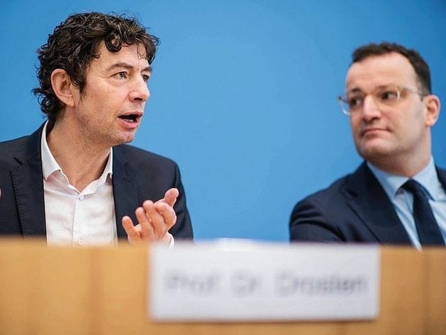 A sinistra, Christian Drosten assieme all’ex ministro della Salute, Spahn, nel marzo del 2020