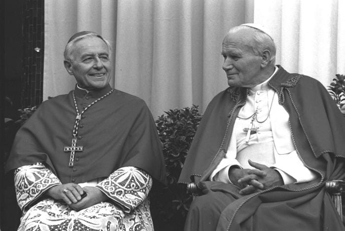 Il cardinal Poletti, a sinistra, assieme a Giovanni Paolo II